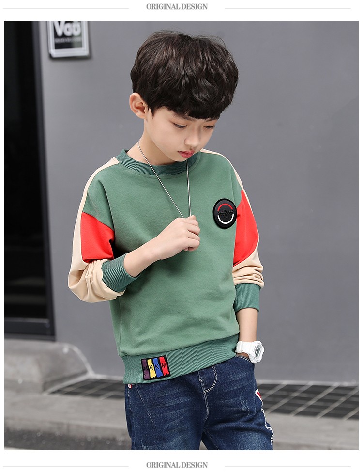 子供服の男の子のTシャッツ春秋服の新型子供供の长袖の打底シャッツの中で大童の护卫の服の男の子のカジュア运动のTシャツの赤い色の160は身长の150-160 CMに适します。
