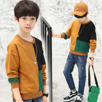 子供服の男の子Tシャッツ春秋服の新し子供の长袖の打底シャッツの中で大き子供の护卫の服の男の子のカジュアポーツのTシャッツのゆったバージョンのカーキ170は身长の150-160 CMに似合います。