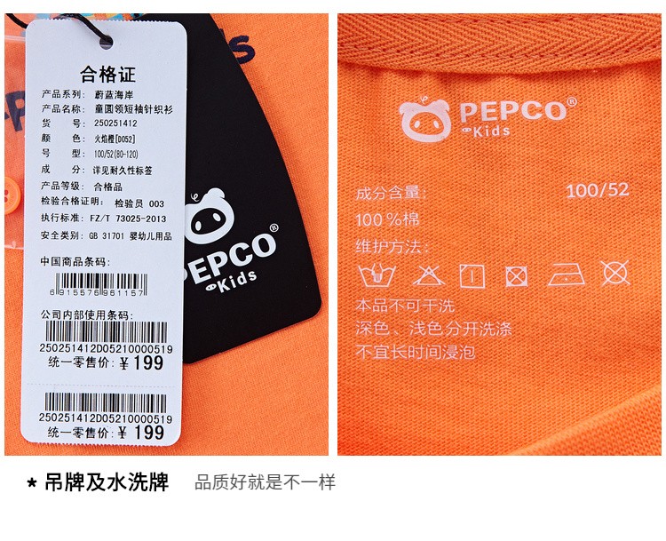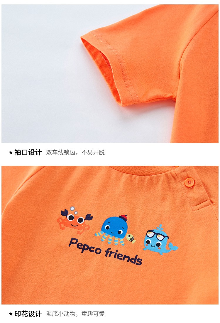 ピグナの子供服の男の子は2020年夏に青い海岸のシリズの丸首の半袖のニコッの真珠の白の120 cmを詰めます。