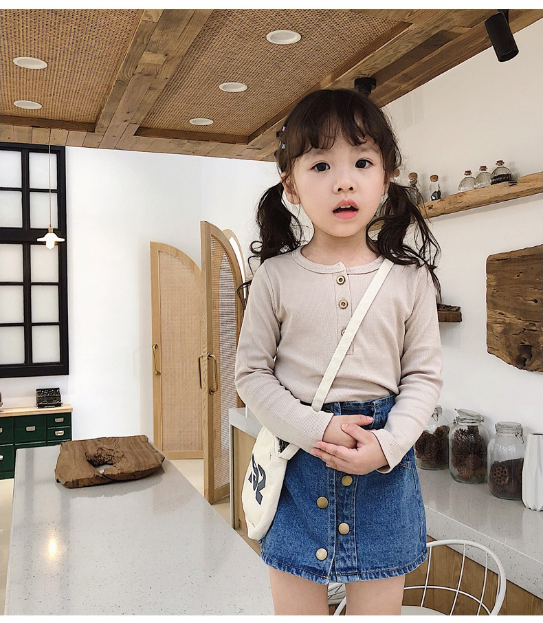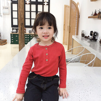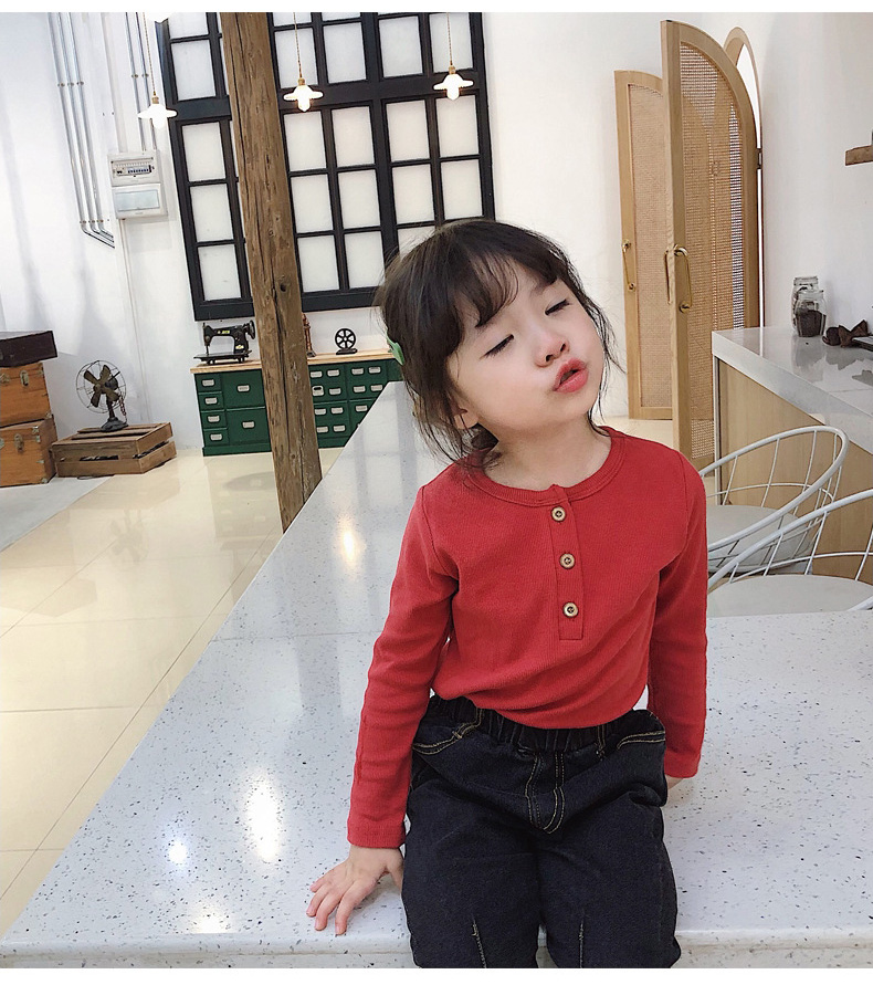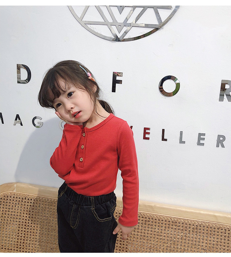 子供服の女性用ボトム2020秋の新型女性の綿質ボム子供用丸首長袖Tシャ春と秋の上着は韓国版のTシャッツに相当します。