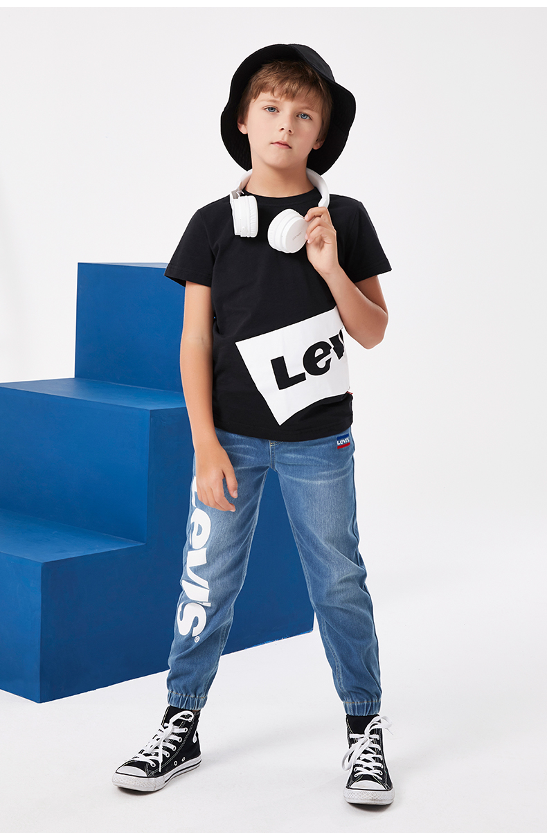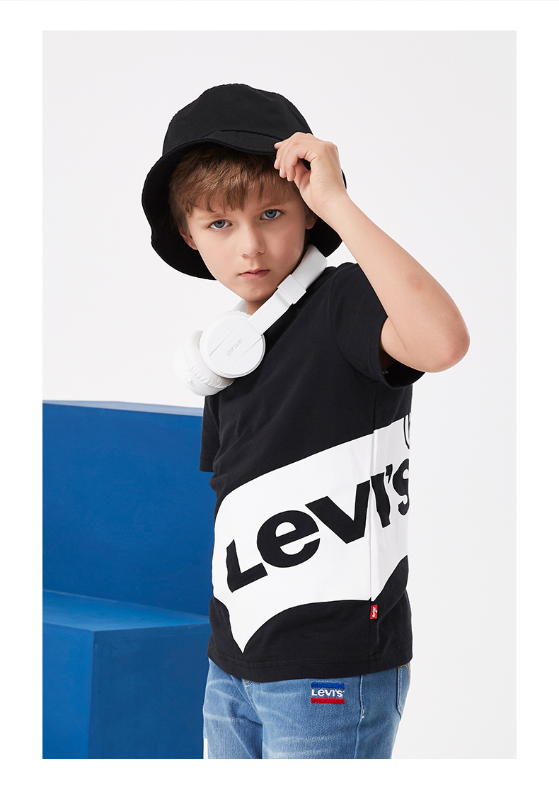 Levi's李维斯子供服夏男童经典LOGO亲子モデル子供给纯绵半袖Tシャッツ5 E/正黒斜模様130 cm