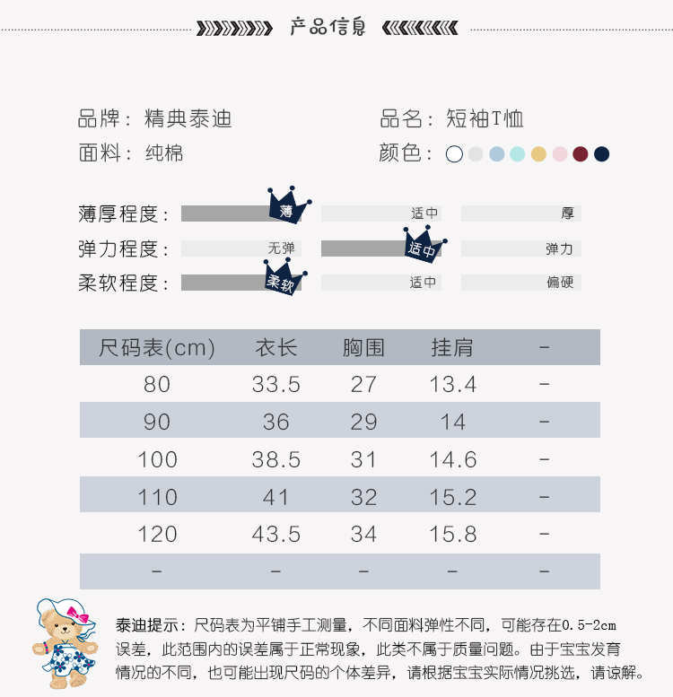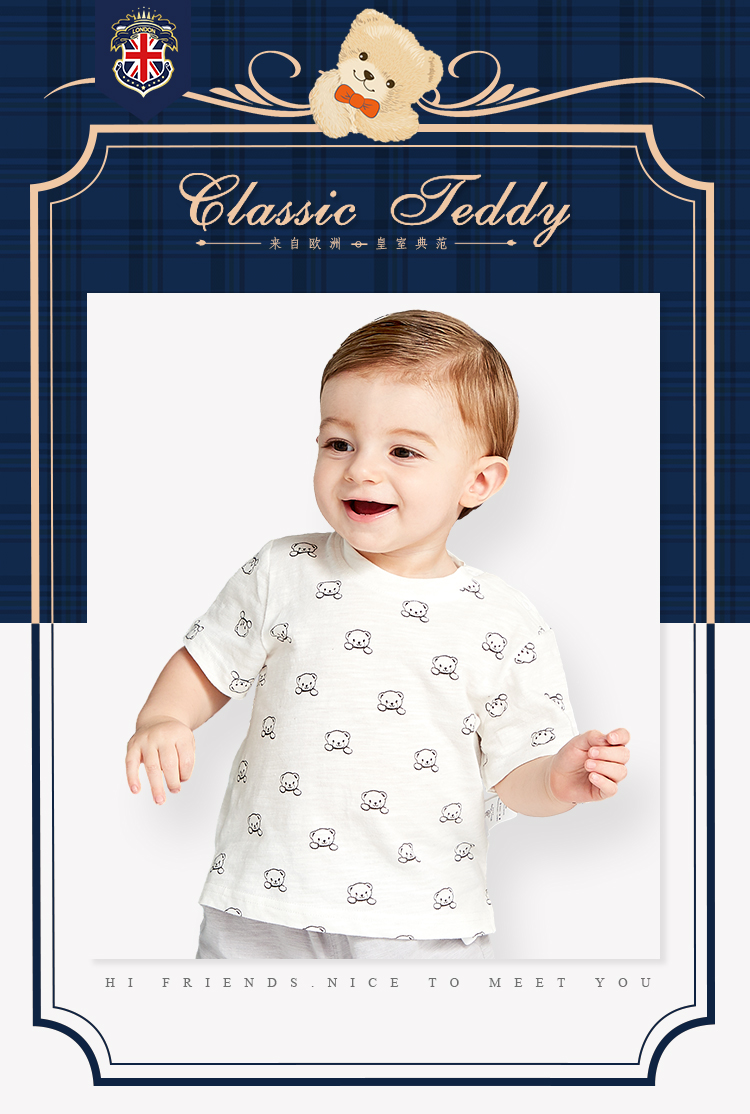 精典泰迪Class ic Teddy子供服半袖Tシャツー男女童上着かわいい熊/浅蓝120