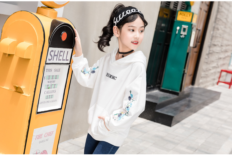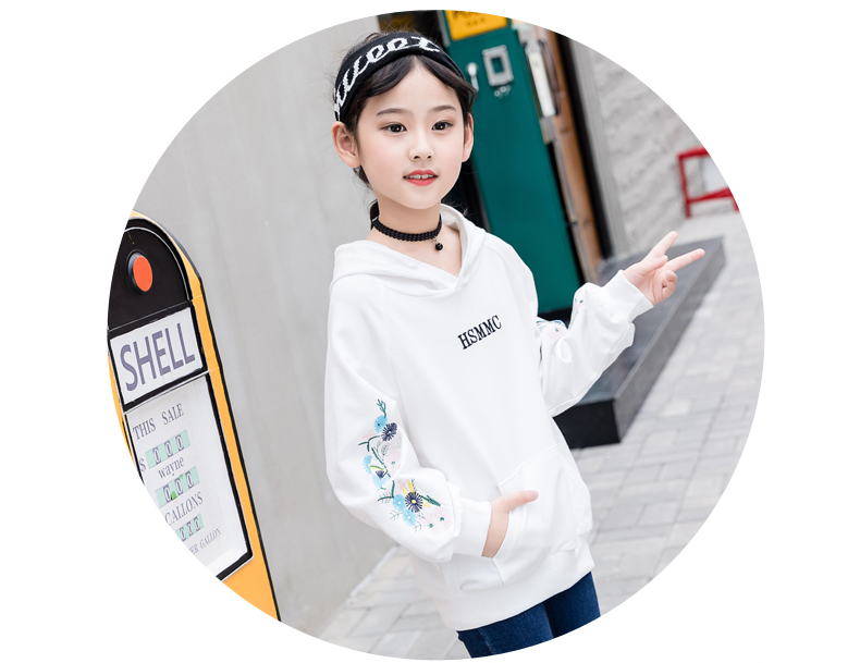 女性用Tシャ长袖子供应用ボトム年齢テスルの中大童卫衣の连帽がゆったままです。秋の新型女の子のTシャツの上着は韓国版の白160(身長150 cm-160 cmに適しています。)