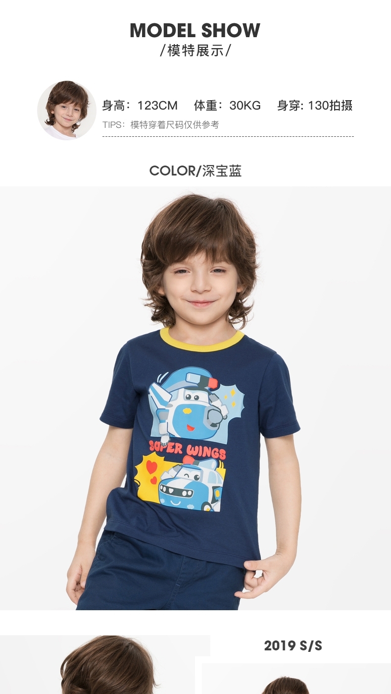 ベニロドラック供服2019新型スーパー侠客大童半袖Tシャチャ潮童男宝春装上衣33 B深宝藍140 cm(140 CM)